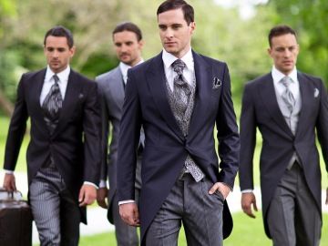 Pokud snoubenci plánují velkou svatbu v archaických úborech, musejí dbát na jedno tabu: i když nevěsta bude mít závoj a velkou vlečku nesenou družičkami, ženich nemůže mít na sobě smoking, jak se mnoho párů domnívá. Smoking je nástupcem fraku v pozici nejslavnostnějšího večerního oblečení, proto se může oblékat až po 19. hodině. Pokud by se svatba konala večer, budiž, ale přes den musí mít na sobě muž denní protějšek smokingu a tím je žaket: dlouhé sako s plnými přednicemi šikmo ubíhajícími ke stranám má jakoby odstřižené a zakulacené šosy. Košile k žaketu náleží jen světlá, s klasickým límečkem, a pozor: k žaketu se nenosí motýlek, ale buď plastrón (šitý šátek s perlou ve stylu předchůdce dnešní kravaty), nebo stříbrošedá kravata, ba i vhodně barevné kravaty nebo regaty. K žaketu se nosí oxfordky, černé kožené boty s uzavřeným šněrováním. Další vhodné doplňky jsou cylindr, vycházková hůl a rukavice. Cylindr a rukavice se v obřadní místnosti odkládají na židli, aby ženichovi nepřekážely při obřadu.
