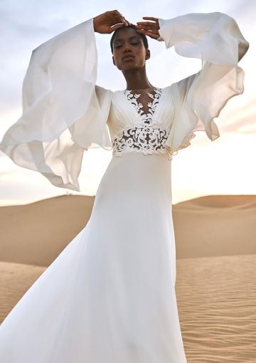Jak jsme už zmínili, příští sezónu budou v kurzu rukávy všech druhů a tvarů. Čím více dramatické, tím lépe. Velkým hitem jsou především nabírané a balonové rukávy. Nemůžete se rozhodnout mezi šaty s rukávem a bez rukávu? Užijte si na svou svatbu dva vzhledy v jednom