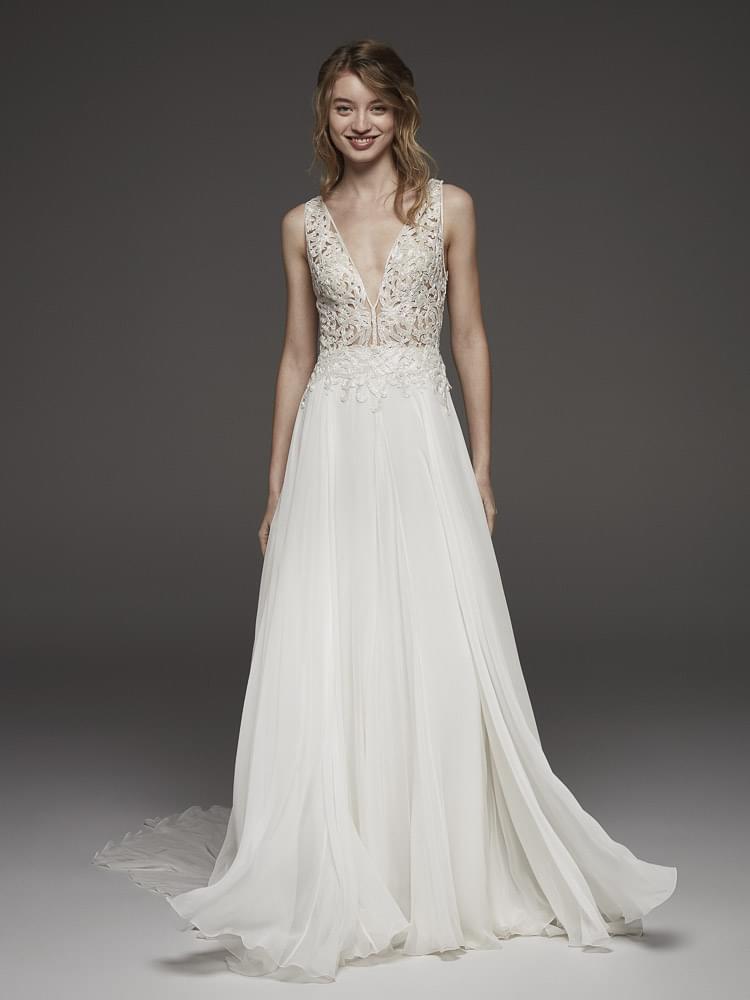 Svatební šaty PRONOVIAS nabízejí nejenom tu nejvyšší kvalitu, ale také tradici - již od svého založení roku 1922 je značka proslulá svým mistrovským zpracováním, krásnými krajkami, smyslnými střihy a nádhernými látkami.