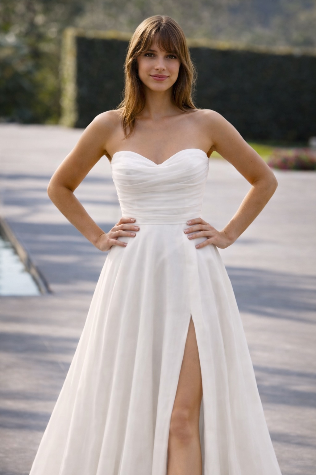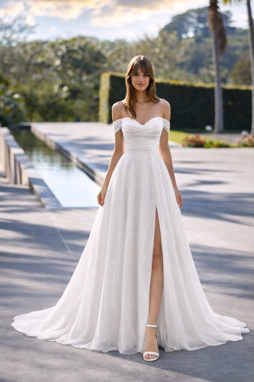 Svatební šaty COLET okouzlí lehkostí, romantikou a nadčasovou ženskostí. Řasený korzetový živůtek se srdcovým výstřihem a spadenými ramínky krásně zvýrazňuje linii ramen a dekoltu. V pase plynule přechází do splývavé organzové sukně v áčkovém střihu, která působí velmi vzdušně. Výrazným prvkem je vysoký rozparek, jenž dodává modelu moderní šmrnc a lehkou smyslnost.