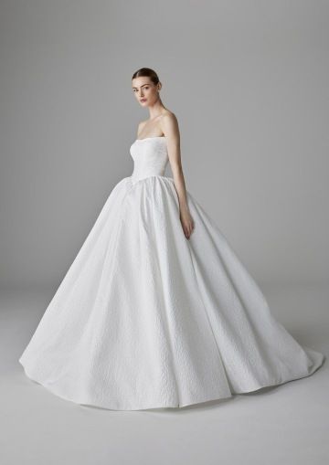 Udělejte velkolepý vstup do svého velkého dne s úžasným designem princeznovských svatebních šatů ALBY. Tyto šaty, vyrobené výhradně z lehoučkého žakáru, mají jemnou 3D strukturovanou úpravu.