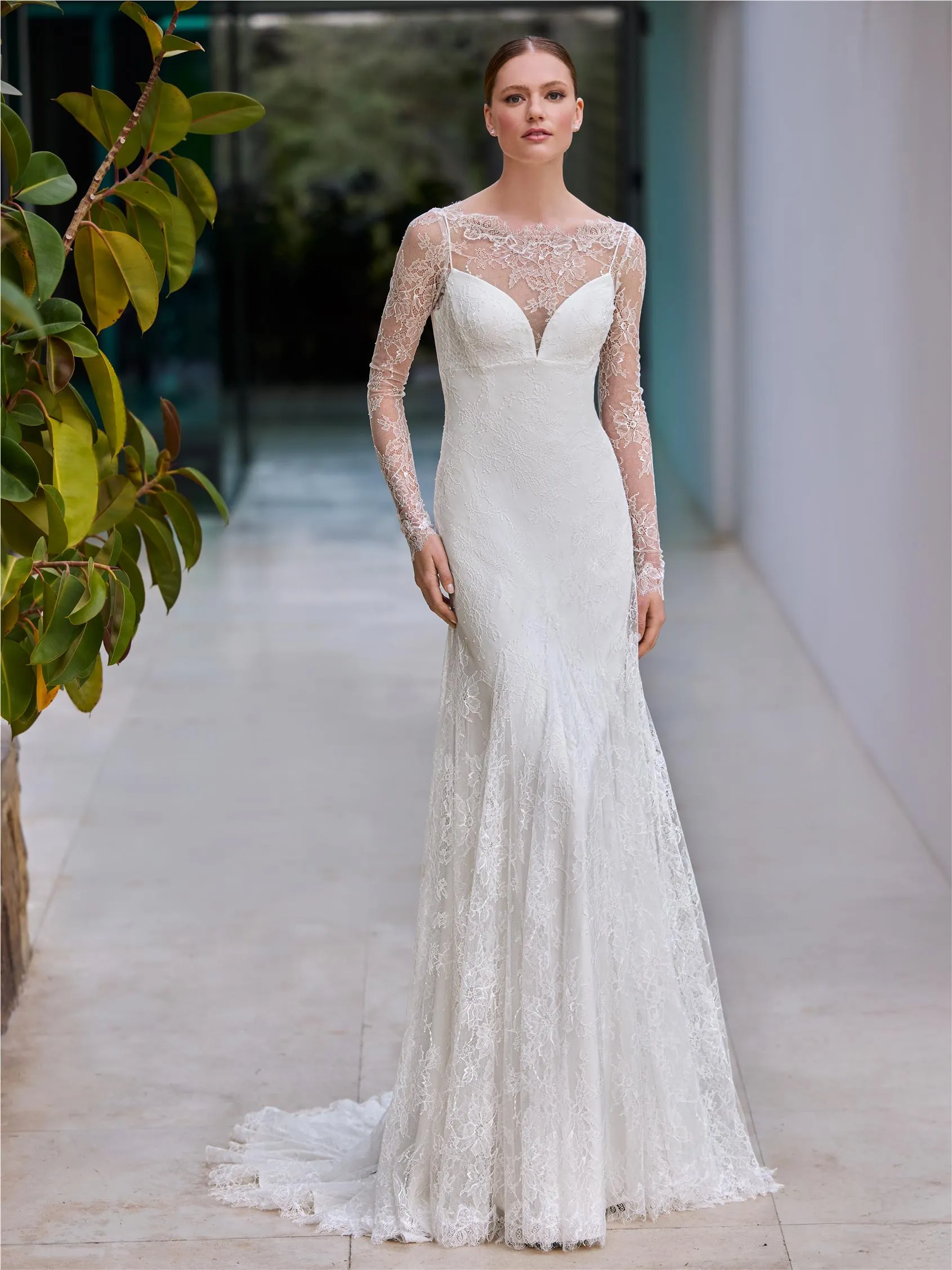 Krajková vrstva působí jako druhá kůže: transparentní, lehká a detailně zpracovaná, s jemným výstřihem, který zůstává elegantní a ženský. Po jejím sejmutí vynikne hladká linie spodních šatů, která krásně kopíruje postavu a působí moderně a sebevědomě. CIENY jsou ideální volbou pro nevěstu, která chce spojit emoci obřadu s uvolněnou elegancí večerní oslavy – bez kompromisů.