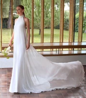 Celý look lze snadno proměnit pomocí odepínacího šifonového pláště, který tvoří éterický efekt vlečky a při chůzi působí až magicky. Díky tomuto provedení se šaty hodí jak pro moderní civilní obřady, tak pro slavnostní svatby, kde nevěsta ocení možnost během dne měnit styling od formálnější verze až po čistý, minimalistický look.