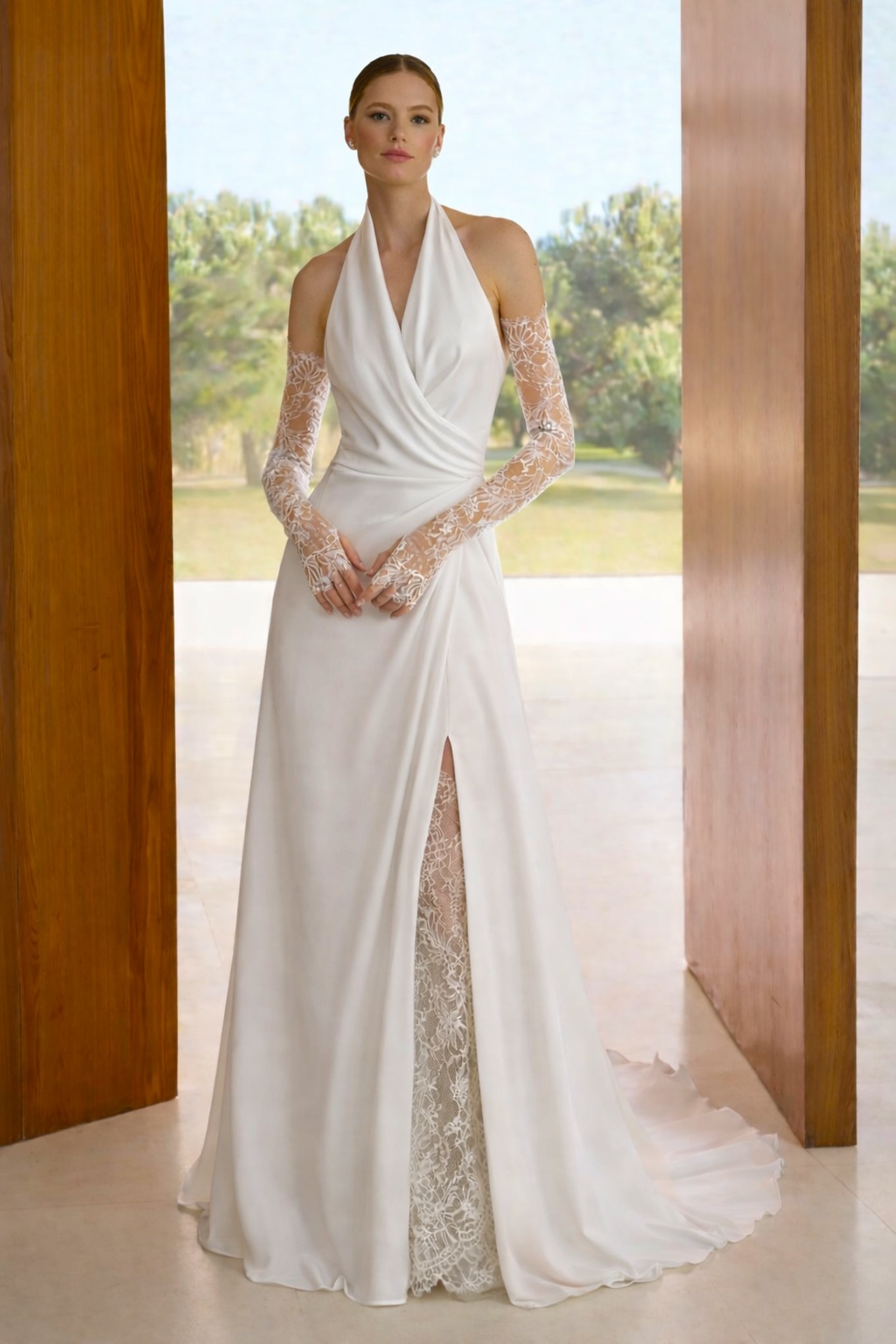 Hlavní kouzlo modelu DOLCA spočívá v proměně díky doplňkům. Jemné krajkové rukavičky a vsadka do rozparku dodají šatům romantický, slavnostní výraz pro obřad, zatímco po jejich odejmutí se model mění v odvážnější, uvolněný look ideální na večerní oslavu a tanec. Jedny šaty, několik podob – přesně podle toho, jak se během dne chcete cítit.