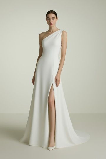 Kouzlo šatů MAGICA spočívá v sofistikovanosti a jednoduchosti jejich designu. Jsou vyrobeny z jemně pružného krepu v trumpetovém střihu, který volně splývá přes postavu. Asymetrický výstřih s nařasenými detaily na rameni. Tyto šaty potěší i ty nejelegantnější nevěsty, které se řídí heslem „méně je více“. Sexy rozparek na nohu dodává sukni větší volnost pohybu.
