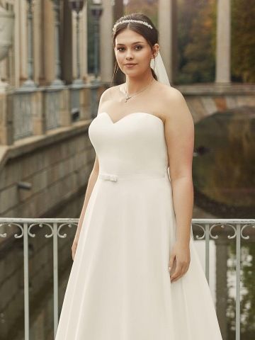 Čisté linie, lehkost a přirozená elegance – svatební šaty CARIS okouzlí svou jednoduchostí a šarmem. Hladký korzet bez ramínek s jemným srdíčkovým výstřihem zvýrazňuje ženskou siluetu, zatímco splývavá sukně z jemného šifonu dodává celému modelu vzdušnost a pohyb.