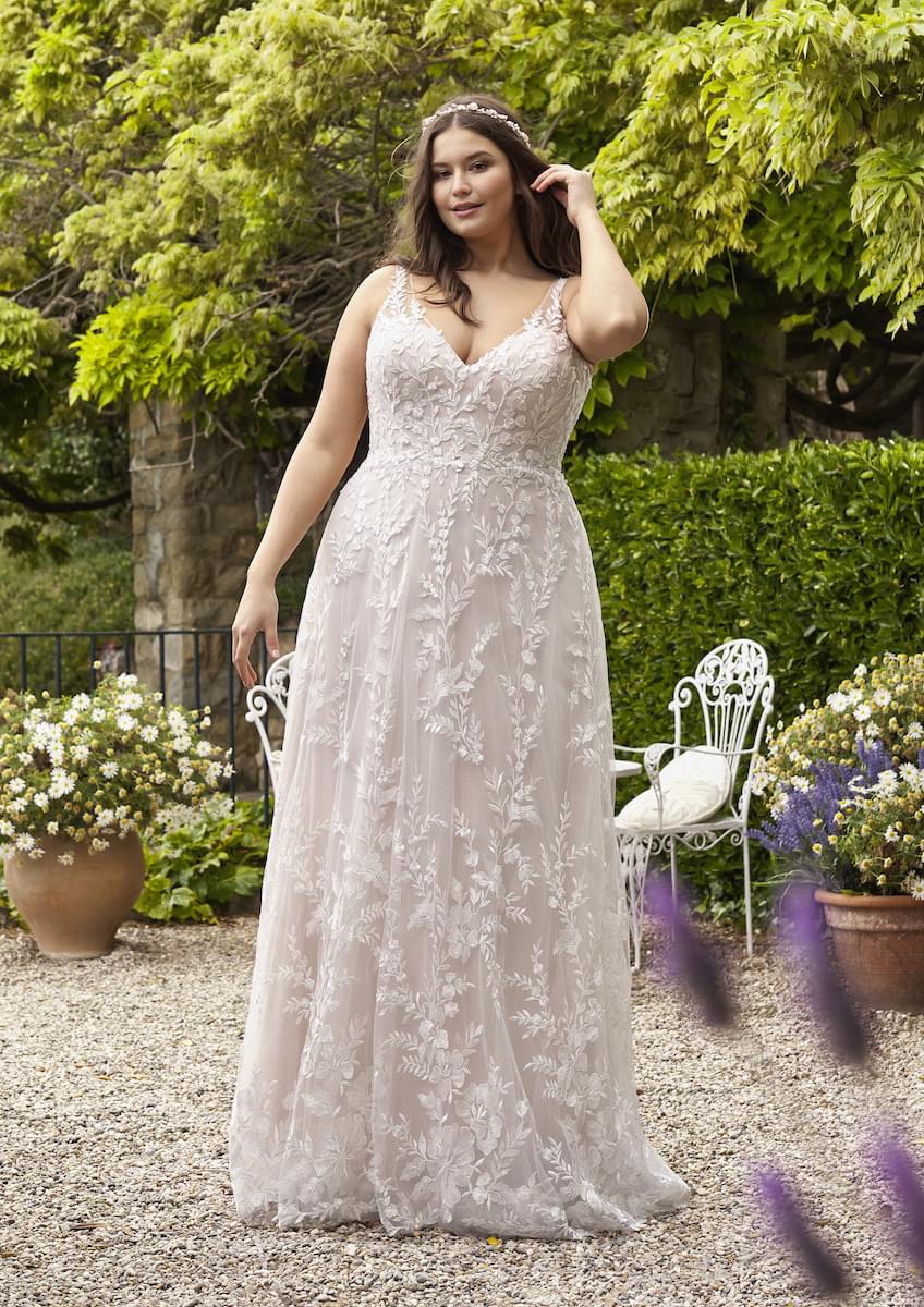 Šaty GRA působí jako jemná pohádka v krajce – romantické a lehké, s nádechem boho vintage elegance. Bohatě vyšívaný tyl s květinovým motivem krásně vyniká na jemném pudrovém podkladu a vytváří dojem, že je třpytivá krajka přímo malovaná na kůži. Hlubší výstřih do V lichotí dekoltu, zatímco vzdušná A-liniová sukně volně splývá a poskytuje maximální pohodlí. Záda překvapí jemně transparentní iluzí s knoflíčky, která dodává modelu lehkost a moderní nádech. Tyto šaty jsou ideální volbou pro nevěstu, která touží po romantice, pohodlí a zároveň šatech, které nenuceně zvýrazní ženské křivky.