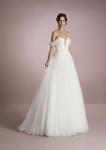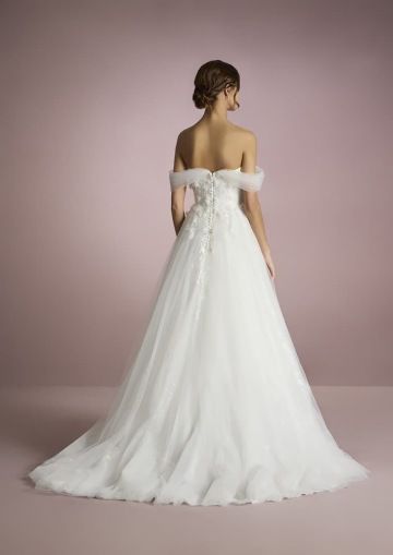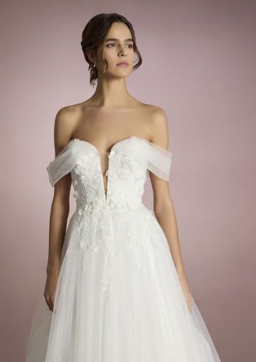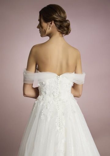 ISA jsou princeznovské svatební šaty ideální pro nevěsty, které se chtějí ve svůj velký den cítit jako v pohádce. Jsou vyrobeny z třpytivého glitrového tylu a jsou zdobené krajkou, kamínky a třpytivými detaily, díky nimž jsou jako ze snu. Přední a zadní část živůtku spojují elegantní spadená ramínka z tylu s odhalenými rameny, které umocňují romantiku designu.
