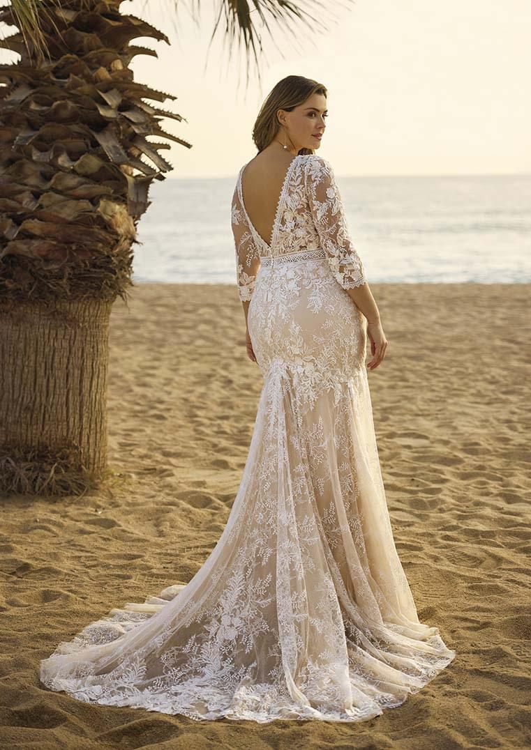 Svatební šaty JIGS jsou romantickou volbou pro nevěsty, které touží po jemné ženskosti a nádechu luxusu. Živůtek do V s rukávy zdobený květinovou krajkou působí něžně, ale zároveň smyslně díky hlubokému výstřihu a průhledným detailům. Přiléhavá krajková sukně kopíruje ženské křivky, přičemž decentní vlečka krásně zvýrazňuje postavu a dodává celku slavnostní půvab. Model JIGS je dokonalou volbou pro boho chic svatbu, ať už na pláži, v zahradě nebo v elegantním prostředí.